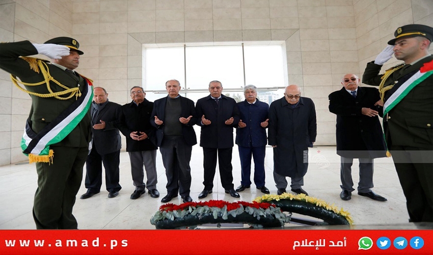 قيادات فلسطينية يضعون إكليلا من الزهور على ضريح الخالد المؤسس ياسر عرفات