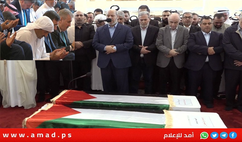وشارك في تأدية صلاة الجنازة أمير دولة قطر الشيخ تميم بن حمد آل ثاني، والأمير الوالد الشيخ حمد بن خليفة آل ثاني، والشيخ محمد بن عبد الرحمن آل ثاني رئيس مجلس الوزراء القطري وزير الخارجية، ووفود رسمية وقيادات وممثلي الفصائل الفلسطينية.