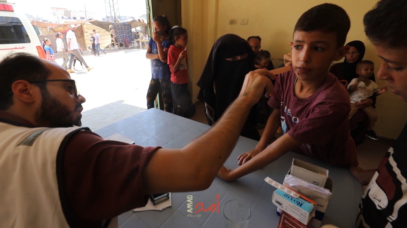 في منطقة معن، الواقعة شرقي مدينة خانيونس، تستقبل عيادة الهلال الأحمر نحو 180 حالة يوميًا. يقول محمد قديح، الذي حضر للمراجعة في حساسية الجلد التي أصابته بسبب حرارة الخيمة التي نصبها على أنقاض بيته المدمر: "لم يقصر الأطباء والممرضون هنا لحظة. استقبلني الطبيب، وقدم لي الإرشادات اللازمة، والمراهم المطلوبة، رغم أنها لم تكن متوفرة، كتب لي بديلًا عنها، وأخرى مكملة لها، وطلب مني المراجعة بتاريخ اليوم".