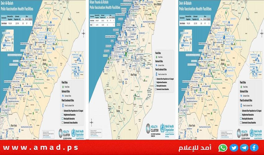 ونشرت وزارة الصحة خرائط ميدانية تبين أماكن ومراكز التطعيم، كما أرسلت رسائل نصية للمواطنين في قطاع غزة لإعلامهم بمواعيد تلقي المطاعيم.