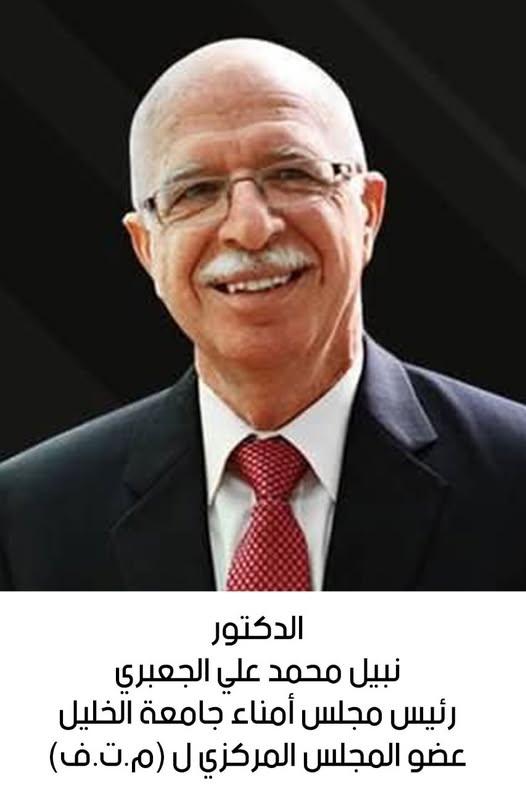 رحيل القائد الوطني الكبير المناضل والمفكر طيب المرحوم الدكتور نبيل الجعبري رئيس مجلس أمناء جامعة الخليل الرئيس الأعلى للجامعه عضو المجلس المركزي لمنظمة التحرير الفلسطينيه وعضو المجلس الوطني الفلسطيني