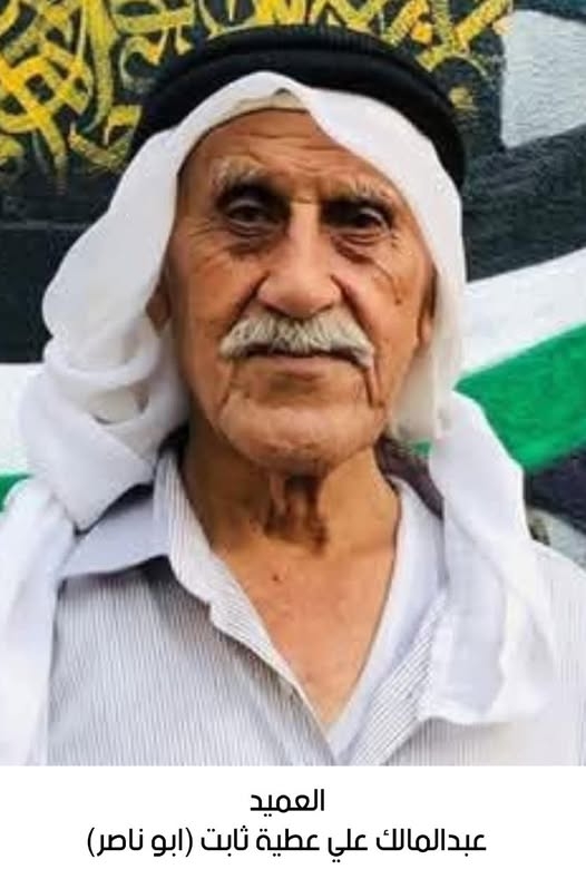 أمد/ المناضل / عبدالمالك علي عطية ثابت من مواليد مدينة بئر السبع بتاريخ 1/12/1938م، حيث تربى وترعرع في كنف عائلة وطنية متمسكة بالحقوق والثوابت الفلسطينية.