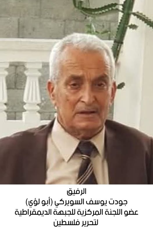 ننعي الي جماهير شعبنا الرفيق المناضل والقائد جودت السويركي (ابولؤي) احد مؤسسي الجبهه الديمقراطيه لتحرير فلسطين