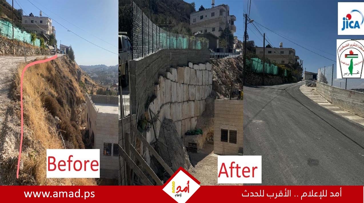 وشملت المرحلة الثانية من المشروع تنفيذ أعمال رفع لمستوى السلامة المرورية في عدد من المقاطع الحيوية داخل المخيم ومحيطه، من خلال بناء جدار استنادي مع قلاع حجرية في منطقة شهدت سابقاً انهيارات شكلت خطراً على سكان المنطقة والمارين، إضافة إلى تنفيذ أعمال صيانة وترقيعات في بعض المقاطع بهدف الحد من حوادث السير وتحسين حركة المرور.