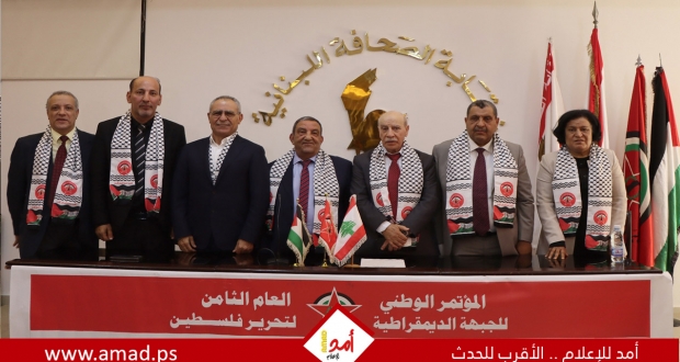 وقالت في بيانها الختامي،في اجواء "طوفان الاحرار" واسنادا لصمود غزه وبسالة مقاومتها، اعلنت الجبهة الديمقراطية لتحرير فلسطين نتائج مؤتمر العام الثامن، وذلك في قاعة نقابة الصحافة اللبنانية في بيروت، بحضور عدد من اعضاء المكتب السياسي واللجنة المركزية وحشد دبلوماسي يتقدمهم سفراء فلسطين، كوبا، فنزويلا، وممثلين لسفارات روسيا وايران اضافة الى امين سر فصائل منظمة التحرير الفلسطينية وحركة فتح في لبنان وفؤاد الحركة ممثلا نقيب الصحافة عوني الكعكي واعضاء المجلس الوطني الفلسطيني في لبنان. كما شارك عدد من قادة وممثلي الاحزاب اللبنانية والفصائل الفلسطينية ولجان شعبية ومؤسسات اهلية ووامناء سر واعضاء الاتحادات الشعبية وفعاليات وشخصيات وطنية فلسطينية ولبنانية. وحشد من ممثلي وسائل الاعلام العربية واللبنانية والفلسطينية.