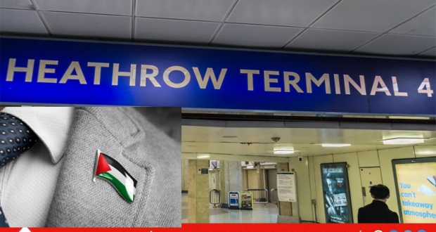 لندن: ارتداء موظفي أمن في مطار هيثرو أعلام فلسطين يغضب "اللوبي الإسرائيلي"