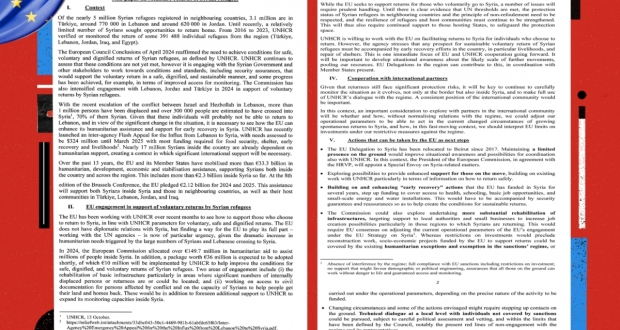 لندن: تداول مسؤولون غربيون وعرب، وثيقتين سريتين تتعلقان بسوريا حصلت "المجلة" على نصهما، الأولى أوروبية تتعلق بـ "العودة الطوعية للاجئين السوريين" وتقترح خطوات ملموسة بينها تعيين مبعوث أوروبي للانخراط مع دمشق ومؤسسات أممية للبناء على موضوع اللاجئين، وأحد المرشحين لهذا المنصب كريستيان بيرغر، والمشاركة في "إعادة تأهيل البنية التحتية" و"الحوار التقني على المستوى المحلي مع الأفراد غير المشمولين بالعقوبات" الأوروبية. حسب مجلة المجلة.