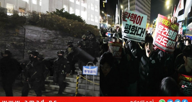 وأظهر بث حي للتلفزيون، في وقت سابق، قوات مكلفة فيما يبدو بفرض الأحكام العرفية وهي تحاول دخول مبنى البرلمان، كما شوهد موظفو البرلمان وهم يحاولون صد الجنود برش مواد إطفاء الحرائق.