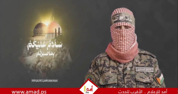 ولفت أبو عبيدة الى اننا نعلن وفصائل المقاومة التزامنا التام باتفاق وقف إطلاق النار مع تأكيدنا أن كل ذلك مرهون بالتزام العدو، وندعو كافة الوسطاء إلى إلزام العدو بتنفيذ اتفاق وقف إطلاق النار، ونخص بالشكر إخواننا في أنصار الله ورفقاء السلاح في حزب الله الذين قدموا أثمانا باهظة في معركتنا، ونقدم كل التحية إلى المقاومة الإسلامية في العراق وإخواننا في الاردن الذين اخترقوا الحدود مع المحتل.
