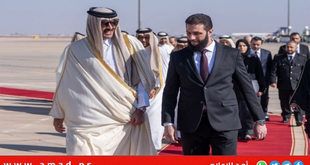 دمشق: وصل أمير دولة قطر الشيخ تميم بن حمد آل ثاني إلى العاصمة دمشق، في أول زيارة لزعيم عربي إلى سوريا منذ سقوط حكم بشارالأسد وتسلم أحمد الشرع رئاسة سوريا لمرحلة انتقالية.