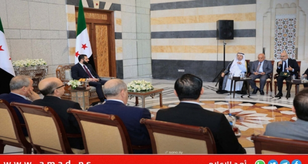 السيد الرئيس أحمد الشرع يستقبل وفداً إعلامياً عربياً، يضم مديري مؤسسات إعلامية ورؤساء تحرير صحف عربية ووزراء إعلام سابقين.#أحمد_الشرع #سانا pic.twitter.com/e2PQoZNMFK