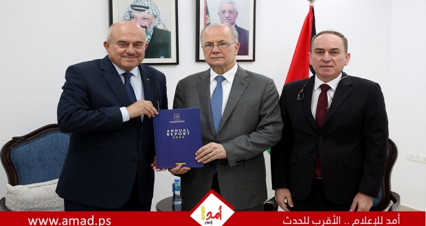 رام الله: تسلم رئيس الوزراء د. محمد مصطفى، يوم الاثنين، التقرير السنوي لصندوق تطوير وإقراض الهيئات المحلية للعام 2024 ، من وزير الحكم المحلي ورئيس مجلس إدارة الصندوق سامي الحجاوي، بحضور مدير عام الصندوق محمد الرمحي.