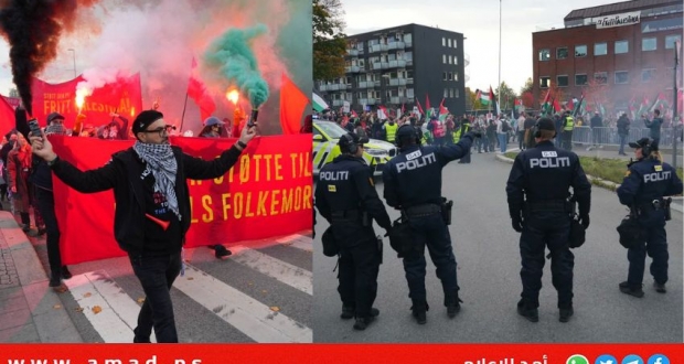 أوسلو: شهدت العاصمة النرويجية أوسلو. يوم السبت، احتجاجات واسعة وإجراءات أمنية مشددة قبيل المباراة، التي جمعت منتخب النرويج بفريق دولة الاحتلال الإسرائيلي، ضمن تصفيات كأس العالم لكرة القدم والتي فاز بها بخماسية نظيفة.