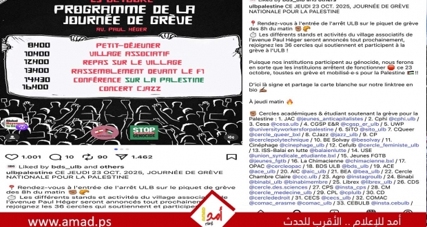 وقالت حركة ULB Palestine الطلابية، في بيان لها، إن إدارات الجامعات البلجيكية لم تفِ بوعودها السابقة بإنهاء التعاون مع الجامعات الإسرائيلية، رغم وضوح المواقف القانونية والأخلاقية الداعية إلى ذلك.