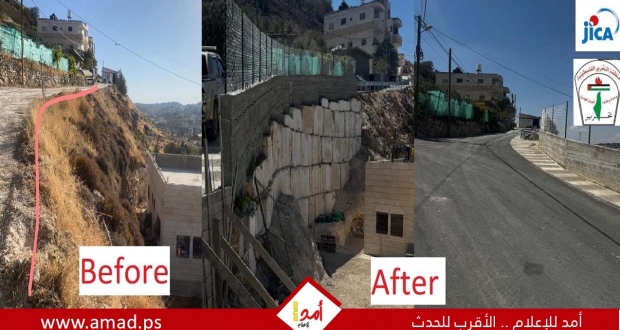 وشملت المرحلة الثانية من المشروع تنفيذ أعمال رفع لمستوى السلامة المرورية في عدد من المقاطع الحيوية داخل المخيم ومحيطه، من خلال بناء جدار استنادي مع قلاع حجرية في منطقة شهدت سابقاً انهيارات شكلت خطراً على سكان المنطقة والمارين، إضافة إلى تنفيذ أعمال صيانة وترقيعات في بعض المقاطع بهدف الحد من حوادث السير وتحسين حركة المرور.