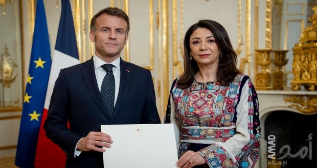 وجرت مراسم تقبل أوراق الاعتماد في قصر الاليزيه، في خطوة تاريخيّة تعكس علاقات الصداقة القوية التي تربط البلدين والشعبين الصديقين عقب الاعتراف الرسمي من قبل الجمهورية الفرنسية بدولة فلسطين في الثاني والعشرين من أيلول/ سبتمبر 2025.