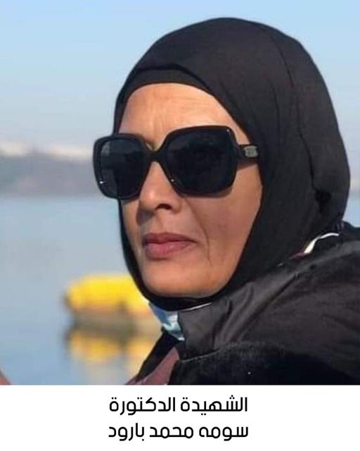 لقد ظلت الدكتورة / سومه محمد بارود حتى أخر يوم من حياتها ذات مبادئ ومحبة وطيبة وصورة حتى عندما فجرت إسرائيل منزلها قبل أسابيع قليلة.