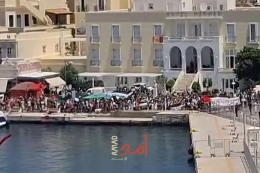 فيديو_ متظاهرون مؤيدون لفلسطين يمعنون إسرائيليون من النزول لجزيرة يونانية#أمد_للإعلام pic.twitter.com/hNzIuqLaOq