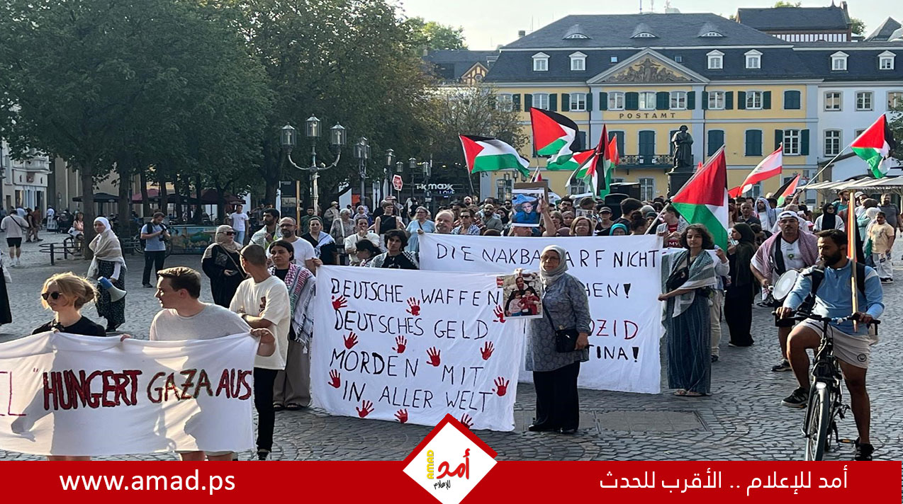 نظم ائتلاف "متحدون من أجل فلسطين"، الذي يضم الجالية الفلسطينية ومعظم المجموعات الألمانية التضامنية، نشاطين في مدينة بون.