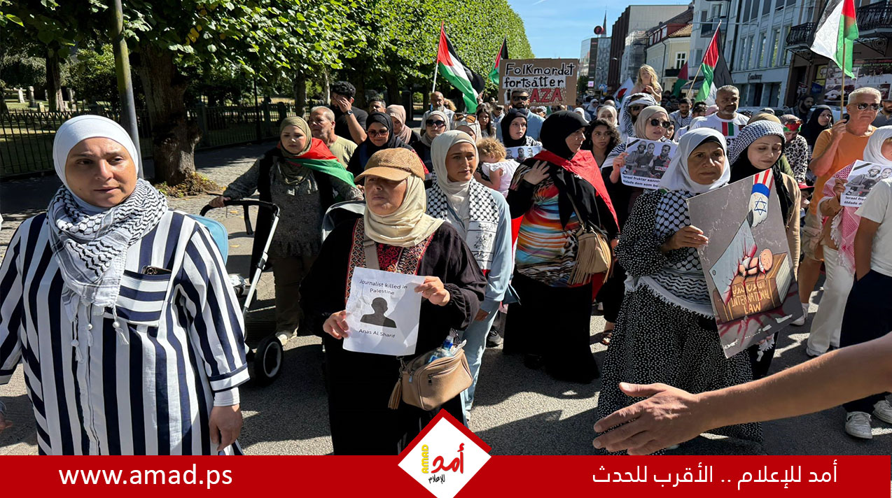 هلسنبوري: نظمت فعاليات شعبية ومجموعات تضامنية يوم السبت 16 أغسطس مسيرة حاشدة تحت عنوان "الصحافة ليست جريمة: العدالة لأنس الشريف وزملائه". وندد المشاركون بالجريمة الإسرائيلية المتعمدة لاستهداف الصحفيين. كما دعوا الحكومة السويدية لمقاطعة إسرائيل واستئناف تمويل "الأونروا"، مطالبين المحكمة الجنائية الدولية بتنفيذ مذكرات اعتقال مجرمي الحرب الإسرائيليين.