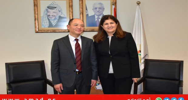 رام الله: استقبلت وزيرة الدولة لشؤون وزارة الخارجية الفلسطينية د.فارسين أغابكيان شاهين، رئيس مكتب جمهورية الصين الشعبية المعتمد لدى دولة فلسطين سعادة السفير تسنغ جيشن والوفد المرافق له اليوم الأربعاء في مقر الوزارة.