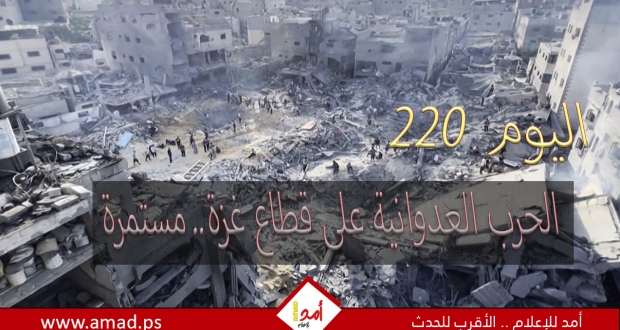 واصلت طائرات الاحتلال الإسرائيلي، قصفها لمختلف مناطق قطاع غزة في اليوم 220 من الحرب مخلفة العشرات من الشهداء والجرحى.