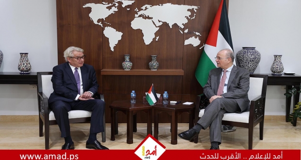 رام الله: التقى رئيس الوزراء د. محمد مصطفى، يوم الأحد في مكتبه برام الله، منسق الأمم المتحدة الخاص لعملية السلام في الشرق الأوسط تور وينسلاند، بحضور وزيرة التنمية الاجتماعية سماح حمد، حيث بحثا آخر المستجدات والتنسيق المشترك لتعزيز الجهود الإغاثية في قطاع غزة، والجهود المبذولة من أجل وقف حرب الإبادة على شعبنا في القطاع، واعتداءات جيش الاحتلال والمستوطنين في الضفة الغربية.