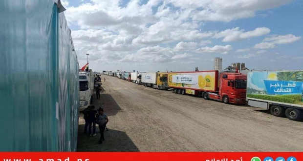 ودخلت 200 شاحنة مساعدات إلى معبر كرم أبو سالم، تحمل مواد غذائية ووقود، بحسب وسائل إعلام مصرية.