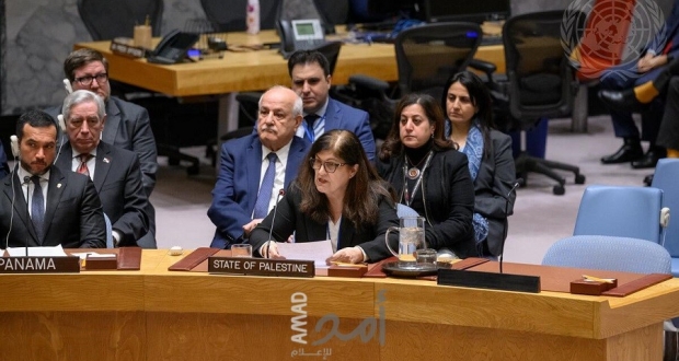 نخاطبكم اليوم في مجلس الأمن، وقلوبنا مثقلة بالألم والغضب لما تعرض له شعبنا الفلسطيني في قطاع غزة، من قتل، وتشريد، وحصار، وتجويع، وغالبيتهم من الأطفال والنساء والشيوخ، علاوة على التدمير المتعمد لكل شيء، أما في الضفة الغربية والقدس الشرقية، فإن شعبنا يتعرض لسرقة الأرض، والاعتداء على ممتلكاته ومقدساته، وانتهاك حقوقه، من خلال الجرائم التي ترتكبها قوات الاحتلال والمستوطنين، دون حسيب أو رقيب.