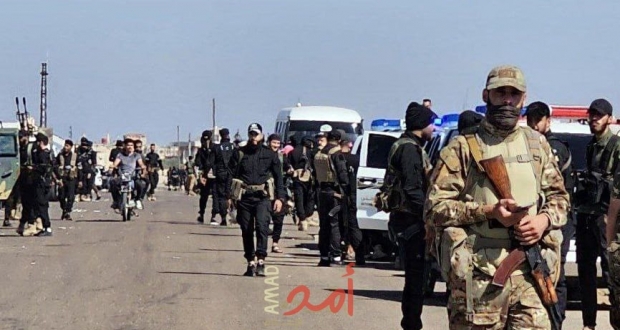 * نشر حواجز الأمن الداخلي والشرطة من الدولة ومنتسبي الشرطة من أبناء محافظة السويداء.