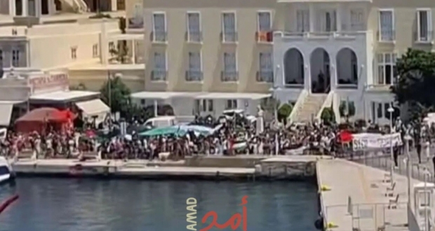 فيديو_ متظاهرون مؤيدون لفلسطين يمعنون إسرائيليون من النزول لجزيرة يونانية#أمد_للإعلام pic.twitter.com/hNzIuqLaOq