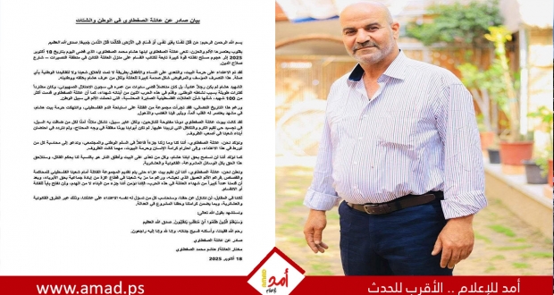 وأشار البيان، إلى أن الشهيد هشام، الذي قضى سنوات من عمره في سجون الاحتلال، كان نموذجاً للتضحية والعطاء، وقدم تضحيات كبيرة خلال حرب الإبادة الأخيرة التي تجاوزت 100 يوم. كما تعرض منزله وعائلته للقصف والتدمير، ما أسفر عن استشهاد عدد كبير من أفراد العائلة، في سياق يهدف إلى إجبار العائلات الفلسطينية على الاستجابة لسياسة التهجير القسري. وتؤكد العائلة أن هذه الجريمة، إلى جانب جميع الجرائم المرتكبة، لن تُنسى وستبقى شاهدة على همجية الاحتلال وخبثه.