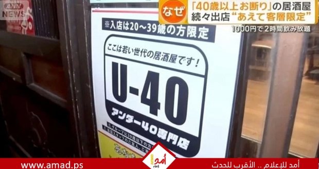 بار ياباني يثير الجدل بسبب لافتنة تمنع دخول الأشخاص الذين تزيد أعمارهم عن 40 عاما.